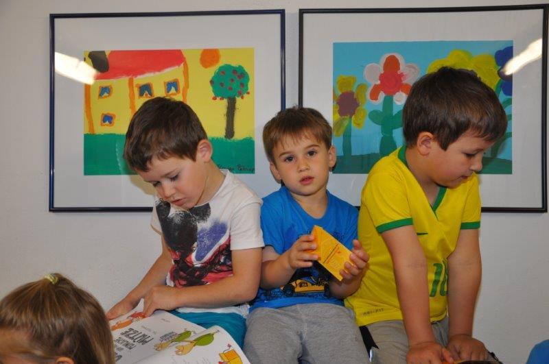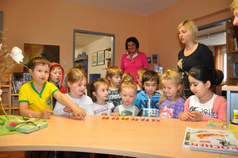 Anschließend schmökerten die Kleinen noch in den vielen wunderbaren Bilderbüchern der Bücherei und so manches lustige Spiel wurde unter die Lupe genommen.