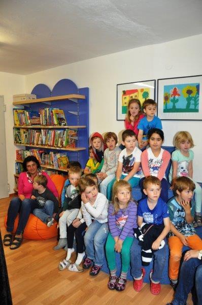 Auf Einladung des Büchereiteams genossen die Kids des Kindergartens einen Vormittag in der Bücherei. Büchereileiterin Elisabeth Huemer nahm  sie mit auf eine Reise mit dem kleinen  vorwitzigen Schaf Charlotte, das allerlei Spannendes erlebt und zum Schluss sogar zum Lebensretter für den alten Schäfer und die gesamte Schafherde wird.