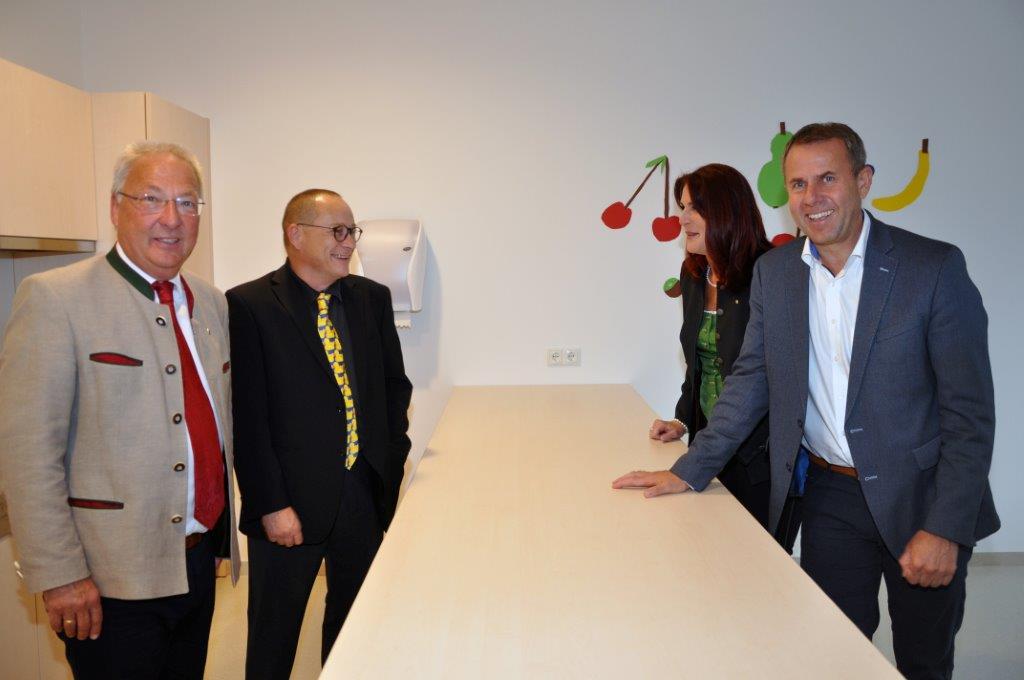 Kronberger bedankte sich explizit bei Kindergartenleiterin Alexandra Moser und ihrem achtköpfigen Team für die ausgezeichnete Arbeit. „Bei uns ist der Kindergarten schon lange keine Aufbewahrungsstätte mehr, sondern wirklich die erste Bildungseinrichtung, in der die Kinder spielerisch und mit viel Einfühlungsvermögen begleitet und auf den Schuleintritt bestens vorbereitet werden.“ Pfarrer P. Burkhard Berger segnete den von Architekt DI Georg Hochleitner akzentuiert gestalteten Holzbau, der durch moderne Schlichtheit sowie seine besondere Helligkeit besticht. Danach wurde in der Aula der Mehrzweckhalle bei einem regionalen Büffet, dass die Projektgruppe Gesunde Gemeinde mit den Bäuerinnen und Mitgliedern des Seniorbundes gemeinsam vorbereitet haben, „kirchhamerisch“ (= gesellig, gemeinsam und ausdauernd) gefeiert.