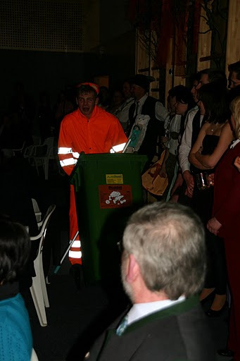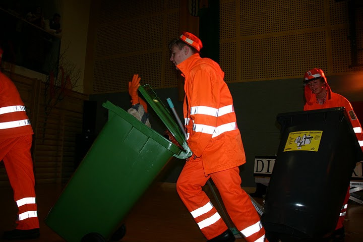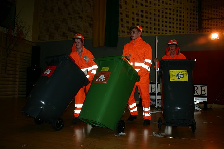 Orange ist nur die Müllabfuhr und ganz besonders wertvoll der Inhalt dieser Mülltonnen! (von links: Grill Petra, Kronberger Gerda und Buchegger Silvia mit den „Müllmännern“ der Judosektion)