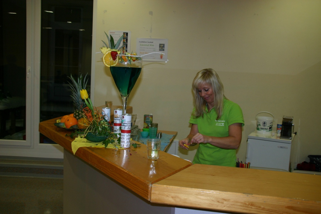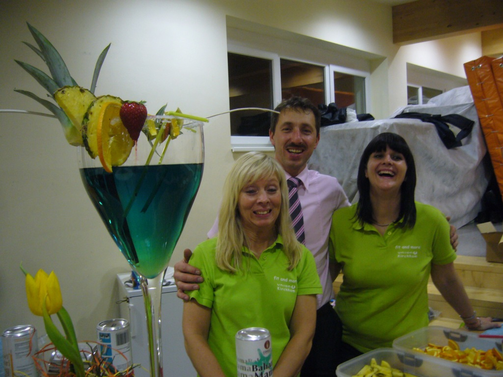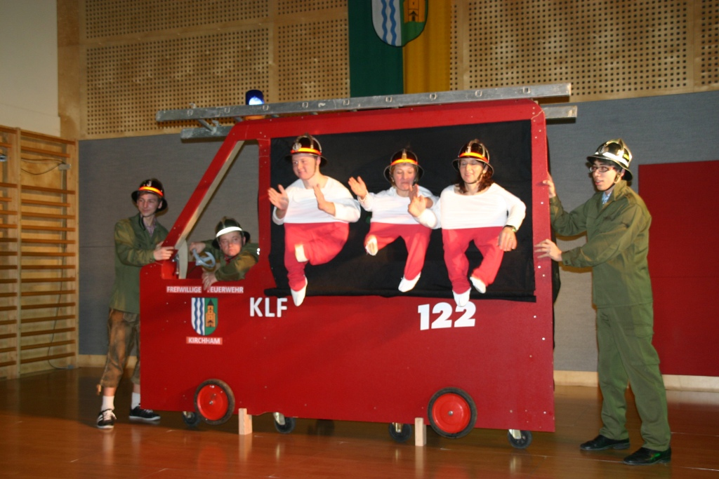 Die Tanzpausen nutzten so manche Ballbesucher für eine kleine Verschnaufpause an der Seiterlbar der JVP oder mit einem Gläschen Wein im Foyer. Besonderen Anklang fand auch die heuer erstmalige Cocktail-Bar auf der Galerie. Das Team von Fit and more kredenzte dabei sieben sehr interessante Mixgetränke von Sex on the beach bis Coconut Kiss. Für alle Jungen und Junggebliebenen ging es in der Judo-Kellerbar heiß her. DJ Eddy sorgte dort für eine entsprechende Partystimmung. Ein besonderer Höhepunkt war wieder die Mitternachtsshow. Mit einem fulminanten Auftritt der Zumbagruppe von Fit and more unter der Leitung von Susanne Rescheneder startete der erste Teil und die Besucher belohnten den kräfteraubenden Auftritt mit tosendem Applaus. Dementsprechend strapaziert wurden die Lachmuskeln im zweiten Teil des Showacts. Bei einem Feuerwehreinsatz der „FF Kirchham“ (Familien Mayrhofer, Pühringer, Söllner, Stöttinger) mit originell nachgebauten Feuerwehrauto ging´s so richtig zur Sache. Angriff Löschen und Lachen lautete der Einsatzbefehl, den alle Mitwirkenden perfekt ausführten.