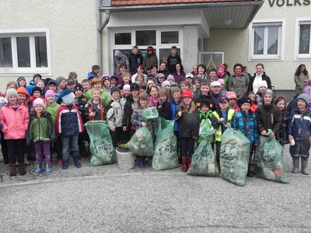 Umweltbewusste Volksschüler samt Lehrerinnen und Elternvertreter machten bei der Säuberungsaktion entlang der Kirchahmer Straßen „reiche Beute“ – 44 Säcke Müll wurden gesammelt! |