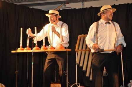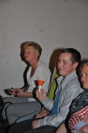 Die Bühne sah aus wie ein Sperrmüllplatz, doch „Se oritschinel Goatnzauns“ brauchten jedes einzelne Stück, um ihren Klangspaß zu vollenden. Ob der Rhythmussack, der Ploppomat, das Flaschophon oder  der Highland-Kobold-Dudelsack-Staubsauger – die fünf Vollblutmusiker aus dem Hausruckviertel brachten mit ihren selbstkonstruierten Instrumenten die Halle der Tischlerei SFK zum Beben. Das Musikprogramm war  breit gefächert und umfasste Songs von deutschen und englischen Evergreens, natürlich nicht immer mit Originaltexten. „So viel gelacht haben wir schon lange nicht mehr“,  waren sich die BesucherInnen einig.