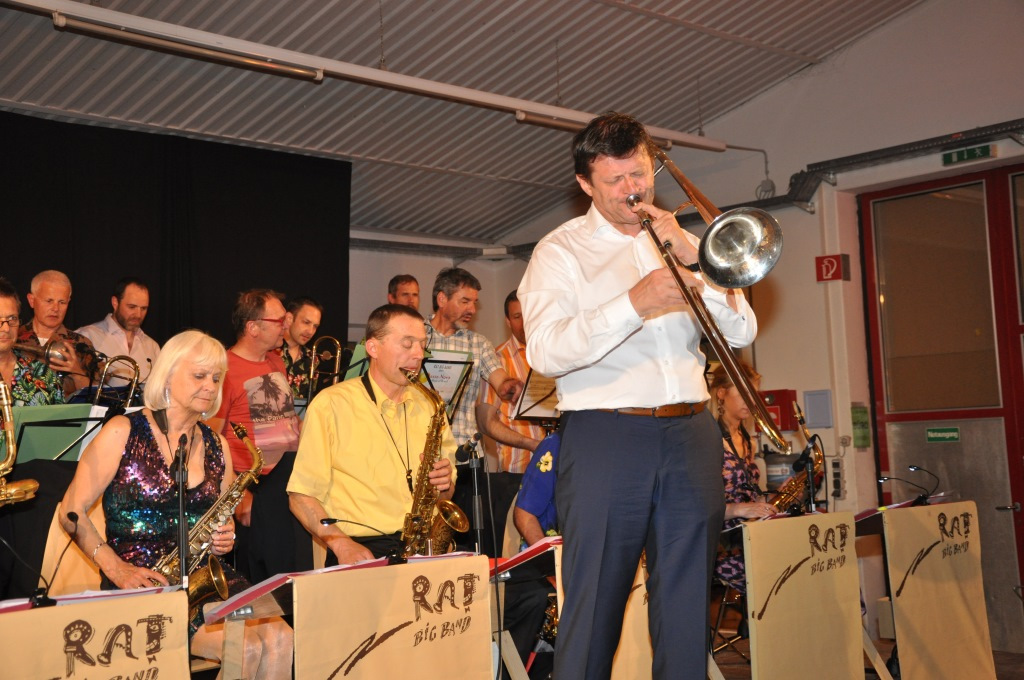 Unvergleichlicher Bigband-Sound, heiße Bossa  Nova Rhythmen, eine  temperamentvolle Bonnie Sinkovics, viel Wissenswertes über Filmhits und Krimiserien- das waren die Ingredienzien des musikalischen Maicocktails der RAT-Bigband in der SFK-Halle. Dazu wunderbare Weine, herrliche Brötchen und Mehlspeisen vom Gasthof Pöll- das Publikum konnte den Abend in vollen Zügen genießen und verließ erst lange nach dem die MusikerInnen ihre Instrumente zur Seite legten  die  wieder einmal als Konzertsaal genutzte Tischlerwerkstätte.