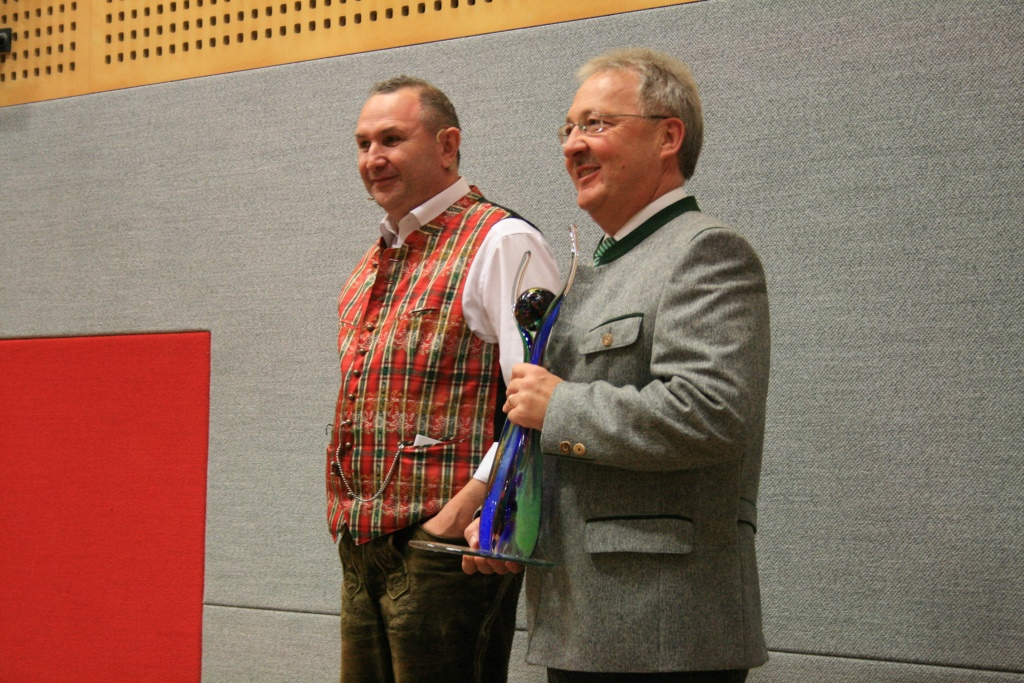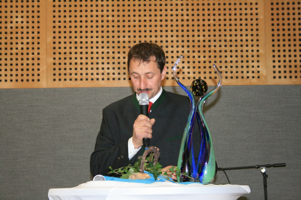 Höhepunkt des traditionellen Abends war die Ehrung von Persönlichkeiten, die sich um die Dorfgemeinschaft der Laudachtalgemeinde große Verdienste erworben haben. Sie erhielten dafür von Bürgermeister Hans Kronberger den „Laureus“, eine ca. 50 cm hohe handgefertigte Glasskulptur, überreicht.