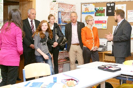 Ausbildung als Basis für Lebensstandard Begleitet von ÖVP-Bezirksobmann LAbg. Bgm. Hannes Peinsteiner fand Frau Mag.Hummer im österreichweit einmaligen Projekt „ZIB Hagenmühle“ Bestätigung für ihre Arbeit. „Die Ausbildung von lernschwachen oder mit Defiziten behafteten Jugendlichen ist ein Schwerpunkt meiner Bildungspolitik. Wer ohne ordentliche Ausbildung ist, hat am Arbeitsmarkt künftig keine Chance. Arbeitslosigkeit und soziale Probleme sind dann vorprogrammiert“, betont die Landesrätin beim Fachgespräch mit Projektleiter Walter Rechenmacher, BIS-Leiter Stefan Enter und Walter Mairhofer, Direktor der Nikolaus-Lenau-Schule. Bürgermeister Hans Kronberger, Vizebgm. Anton Pühringer sowie Gemeinderätin Bettina Feischl berichteten der Landesrätin über die ausgesprochen gute Zusammenarbeit aller am Projekt beteiligten Personen, besonders auch über die rasche Akzeptanz bei der Bevölkerung im Ortsteil Hagenmühle, was letztendlich wesentlich zum Erfolg dieser einmaligen Bildungseinrichtung beigetragen hat. |