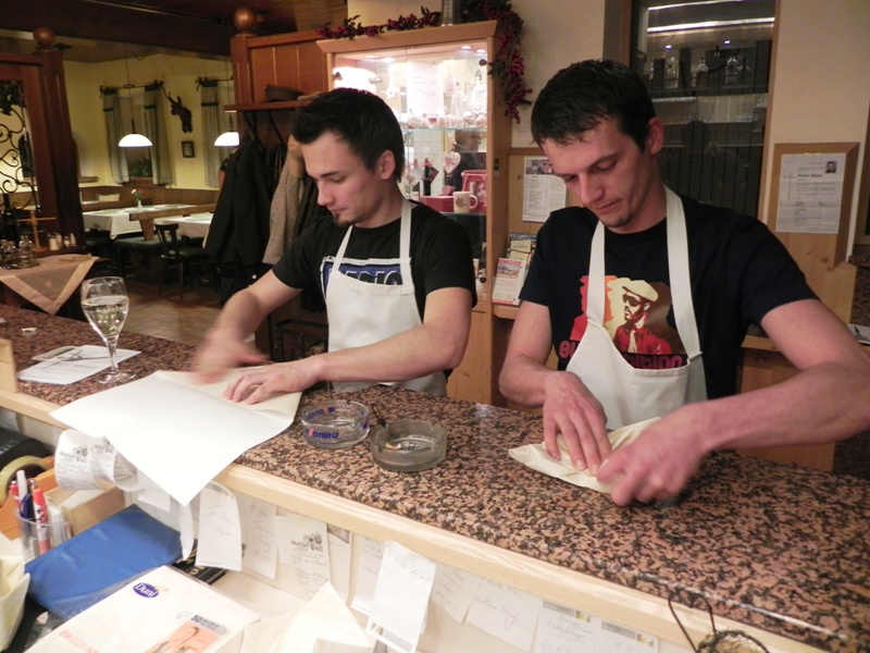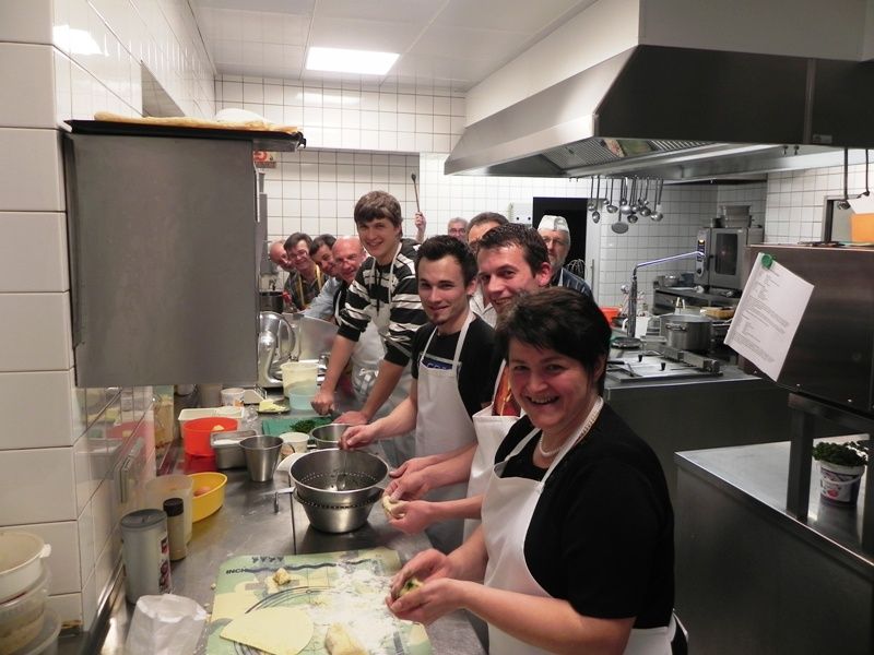 Der Umweltausschuss organisierte zusammen mit der Gesunden Gemeinde am 24. März und am 6. April einen Kochkurs für Männer im Gasthaus Pöll. Das gemeinsame Kochen unter der Anleitung von Traudi Pöll stand unter dem Motto Regionalität. So wurden alle Speisen, von der Erdäpfelsuppe bis zur gefüllten Kalbsbrust mit Lebensmitteln aus der Region zubereitet! Für einen gemütlichen Ausklang sorgte das abschließende Dinner zu dem auch die Frauen der Köche eingeladen waren. Selbstverständlich sorgten die Männer für ein passendes Tischgedeck inklusive Tischschmuck und ein sehr persönliches Service! |