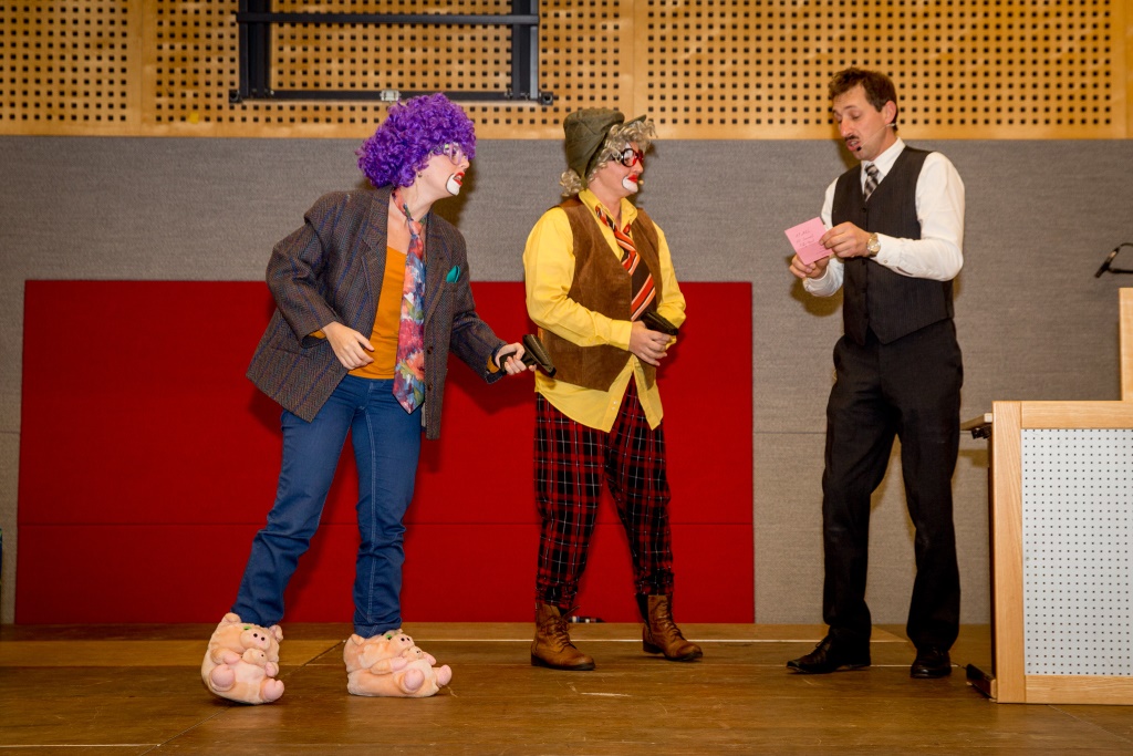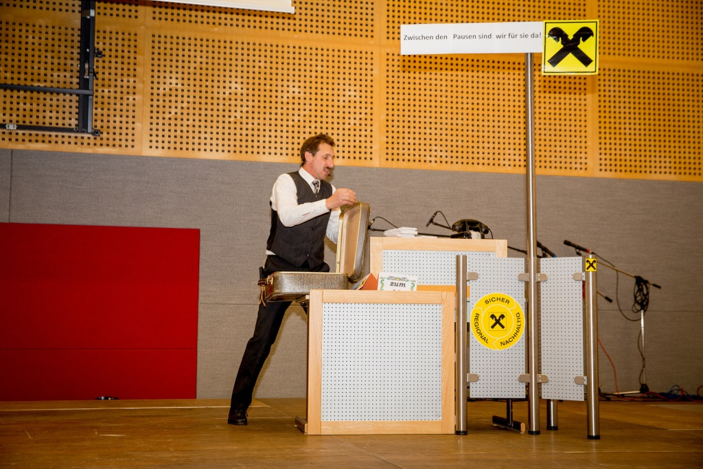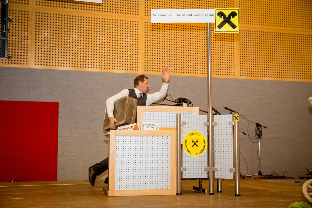 Bevor es in der Pause gemütlich wurde, gab es noch einen Sketch von Pony und Kleid. Hinter diesem Künstlernamen standen die Övp-Gemeinderäte Annemarie Pfundner, Susanne Rescheneder und Vizebgm. Anton Pühringer. Diese zeigten wie man marode Gemeindefinanzen aufbessern kann und strapazierten dabei die Lachmuskeln der Gäste.