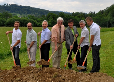 Knapp zwei Jahre nach dem Grunderwerb von der ehemaligen Firma Artina beginnt am 11.Juli der Bau eines zeitgemäßen Gemeinde-Service-Zentrums (GSZ). Im Ortsteil Laizing, vis-à-vis der Firma Mevisto, wird der neue Bauhof mit integriertem Abfallsammelzentrum errichtet. Das Projekt ist mit Gesamtkosten von 665.500 Euro veranschlagt. Mit einer Auftragssumme von 615.000 Euro wurde die Firma Holzbau – Bammer aus Scharnstein als Bestbieter mit der Errichtung des Vorhabens als Generalunternehmer beauftragt. Der rasche Baubeginn wurde möglich, da es Bürgermeister Hans Kronberger gelungen ist, das Projekt ohne Landesmittel zu finanzieren. Der überwiegende Teil der Baukosten wird aus dem Verkauf des bisherigen Bauhofs/ASI-Areals samt Gebäuden an die Firma Weingärtner abgedeckt. Unser Bürgermeister stellte einmal mehr sein Verhandlungsgeschick unter Beweis, indem er den Bezirksabfallverband (BAV) überzeugte, dass Kirchham ein zeitgemäßes Abfallsammelzentrum benötigt. Zudem konnte das Ortsoberhaupt auch noch ansehnliche Fördermittel vom BAV als auch vom Umweltreferat des Landes lukrieren. Der 60 Meter lange Gebäudekomplex wird in Holzbauweise errichtet; dass dafür benötigte Holz (Fichte/Tanne) kommt ausschließlich von Kirchhamer Forstbetrieben. Dies passt optimal zum Standort und bringt vor allem das Umweltbewusstsein wie den starken Bezug der Kirchhamer Bevölkerung zur eigenen Region besonders zum Ausdruck. Mit Ende des Jahres sollten die Baumaßnahmen bis auf die Außenanlagen fertiggestellt sein. Die Übersiedlung ist für April, die Eröffnung im September 2012 geplant. Foto (Martha Steinbach): Spatenstich für das neue Gemeinde-Service-Zentrum (GSZ) in Laizing! v.l.n.r.: Vizebgm. Anton Pühringer, Amtsleiter Alois Jungwirth, Bürgermeister Hans Kronberger, Bundesrat BAV-Obmann Sepp Steinkogler, Ing. Josef Wolf (Planungsbüro), DI Kurt Preimesberger (Geschäftsführer BAV) und Bauausschuss-Obmann GV Klaus Bammer.