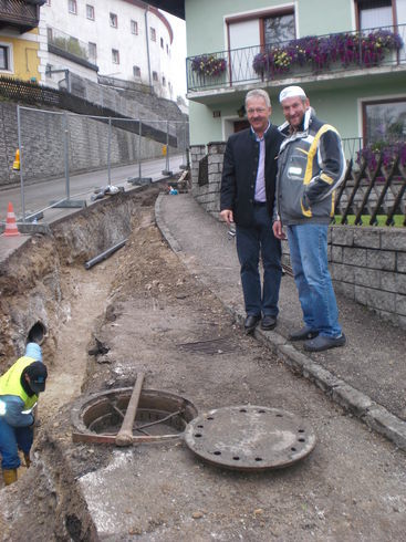 Foto: Bürgermeister Hans Kronberger und Nahwärme-Chef Franz Medl beim schwierigsten Bauabschnitt am Schober-Berg.