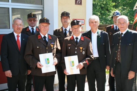 Kirchhams Ortsoberhaupt bedankte sich speziell bei Kommandant Franz Spitzbart-Hiebleitner für seine umsichtige Tätigkeit und sein großes persönliches Engagement bei der FF Feichtenberg. „Du bist mit deinen Kameraden viel mehr als nur Feuerwehr, ihr seid auch Motor und Drehscheibe in der Dorfgemeinschaft wie im alltäglichen Zusammenleben in der Hagenmühle“, setzte Bürgermeister Kronberger die Tätigkeit von Spitzbart und der FF Feichtenberg ins rechte Licht. Für langjährige Zugehörigkeit zur FF Feichtenberg wurden Günter Spernbauer (40 Jahre) und Günther Hartleitner (25 Jahre) mit Dienstmedaillen des Landes OÖ ausgezeichnet.