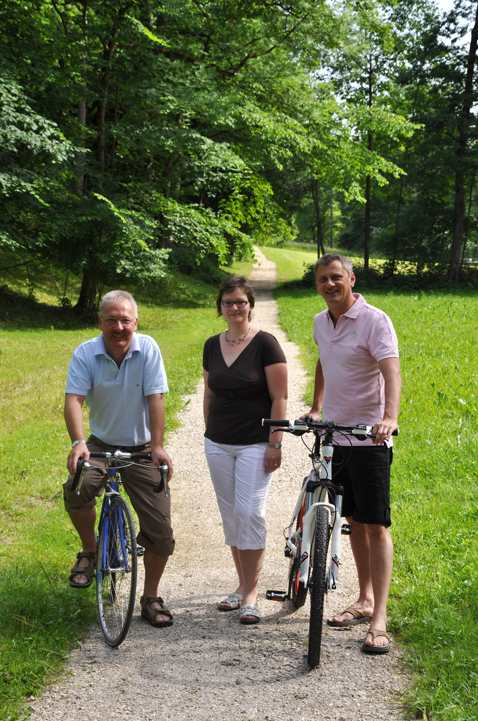 Ausgesprochen positive Reaktionen dürfen wir für die Schaffung des neuen Radweges in der Ortschaft Bergham entgegennehmen. Wir danken den Grundeigentümer (Fam. Waldl-Gruber und Fam. Amering) für ihr Entgegenkommen – damit ist die beliebten Rad- und Wanderstrecke zwischen Vorchdorf und Kirchham durchgängig auf befestigtem Unterbau erschlossen. Dank gebührt aber auch unserem Obmann des Bauausschusses Klaus Bammer, der für die mustergültige und rasche Umsetzung verantwortlich zeichnet. Foto: Bürgermeister Hans Kronberger freut sich mit den GV Gabi Spitzbart und Klaus Bammer über den Lückenschluss des Laudachtal-Radweges in Bergham. |