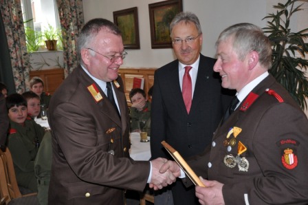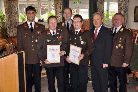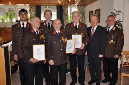 Als neue Mitglieder wurden Robert Frischmuth und Elisabeth Steinbach von Bürgermeister Kronberger angelobt. Markus und Thomas Plank erhielten die Bezirksmedaille dritte Stufe. Für langjährige Zugehörigkeit wurden Alois Steinbach (25 Jahre),  Franz Waldl-Gruber (40 Jahre), Konrad Kronberger, Karl Bammer-Reisenbichler und Josef Plank (alle 50 Jahre) und Franz Hutterer („Humer in der Hub“) gar für 60jährige Mitgliedschaft bei der FF Kirchham ausgezeichnet. Der 80jährige Hutterer, er ist der Vater von Kommandant Gerhard Hutterer, erfreut sich bester Gesundheit und  ist nach wie vor mit Leib und Seele bei allen Veranstaltungen der FF Kirchham dabei.