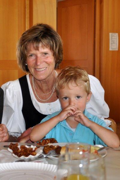 Dann füllte sich rasch das von den Pfarrgemeinderatsmitgliedern aufgestellte Zeit beim Pfarrheim. Der PGR war auch zuständig für die Erfüllung der Getränke- und Essenswünsche. In der Pfarrheimküche war die KFB Obfrau Maria Spitzbart mit den Mitarbeiterinnen professionell am Werke. Die Frauen unter den Pfarrfestbesuchern schätzten es sehr, einmal auch mittags bedient zu werden. Im Pfarrsaal, wo auch Tische und Sessel gerichtet waren, warteten die KFB-Mitarbeiterinnen mit Kaffee und wunderbaren, köstlichen Torten und Mehlspeisen, zur Verfügung gestellt von den Mitgliedern der KFB. Zum Nachtisch wurde davon reichlich Gebrauch gemacht. Ganz begeistert waren die jungen Besucher vom Kinderprogramm und die Zeit verging in Nu. Um 14.00 Uhr war der Luftballonstart.