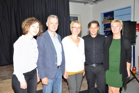 Fotos (Martha Steinbach): Julia, Gerhard und Resi Spitzbart (SFK-Tischlerei), Schauspieler Fritz Karl und Büchereileiterin und Organisationschefin Elisabeth Huemer.