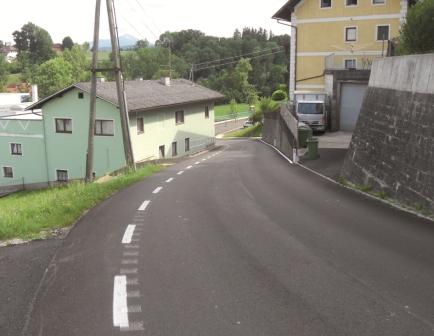Nach dreiwöchiger Bauzeit konnte die Sanierung des Schoberberges fertiggestellt werden. Dabei wurde darauf geachtet, dass die gesamte Breite der vielbefahrenen Straße ausgenützt und dadurch das Befahren für die Verkehrsteilnehmer erleichtert wird. Dies ist durch das Entfernen der beiderseitigen Randsteine erfolgt. Für die Sicherheit der Fußgänger wurden Querrillen in den Asphalt gefräst und mit weißer Farbe markiert. Somit wurde ein optisch ersichtlicher Gehbereich erzeugt. Leider konnte auf Grund der beengten Lage kein Gehsteig errichtet werden. Der Radweg ist optimal eingebunden und eine Standfläche zum sicheren Einfahren in den Schoberberg gewährleistet. Natürlich wurde auch für die Straßenbeleuchtung eine Leerverrohrung verlegt. Positiv ist auch die Einbindung in die „Tal-Straße“ und das auch die Anrainer ihre Parkplätze asphaltiert haben. Trotz der hohen Kosten von ca. 130.000 Euro war die Sanierung dringend notwendig, handelt es sich dabei um eines der meist befahrenen Straßenstücke unserer Gemeinde. |