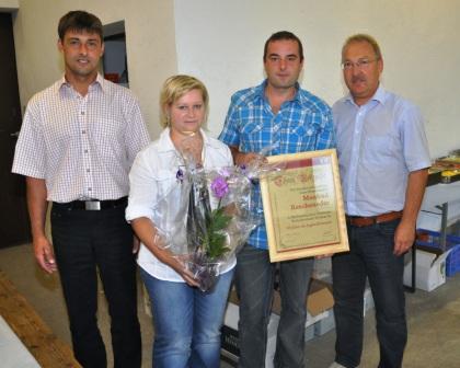 Beim Sommerfest der FF Kirchham im alten Depot am vergangenen Sonntag freute sich Kommandant Gerhard Hutterer über zahlreichen Besuch der Feuerwehrmitglieder samt Partnerinnen, der Jugendgruppe sowie von Bürgermeister Hans Kronberger, Pfarrer P. Burkhard Berger und der Ehrenkommandandten Franz Hessenberger und Josef Schimpl. Hutterer betonte, dass es durchaus ein gutes Gefühl ist, das letzte Fest im bisherigen Feuerwehrzeughaus zu feiern; er berichtete auch über den Baufortschritt, der nach wie vor genau im Zeitplan liegt. Manfred Rescheneder erhielt für seine erfolgreiche, 10jährige Arbeit als Jugendbetreuer eine Ehrenurkunde, die ihm von Bürgermeister Kronberger und Kommandant Hutterer überreicht wurde. |