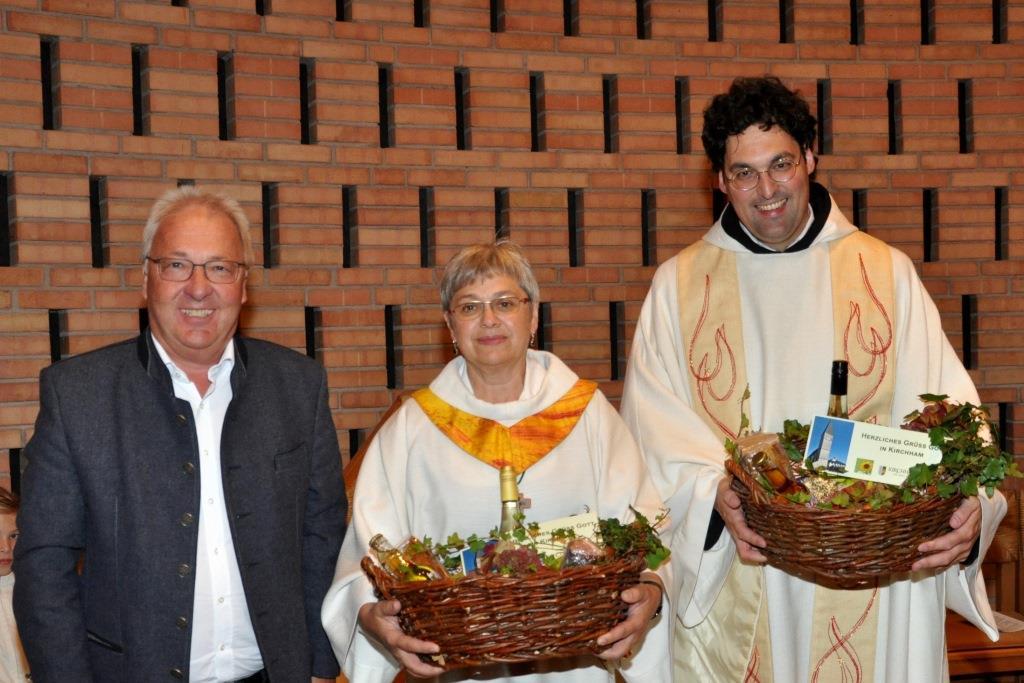 Fotos (M.Steinbach): v.l.n.r.: Bürgermeister Hans Kronberger, Pastoralassistentin Ingrid Veress und Kirchhams neuer Pfarradministrator P. Franz Ackerl.