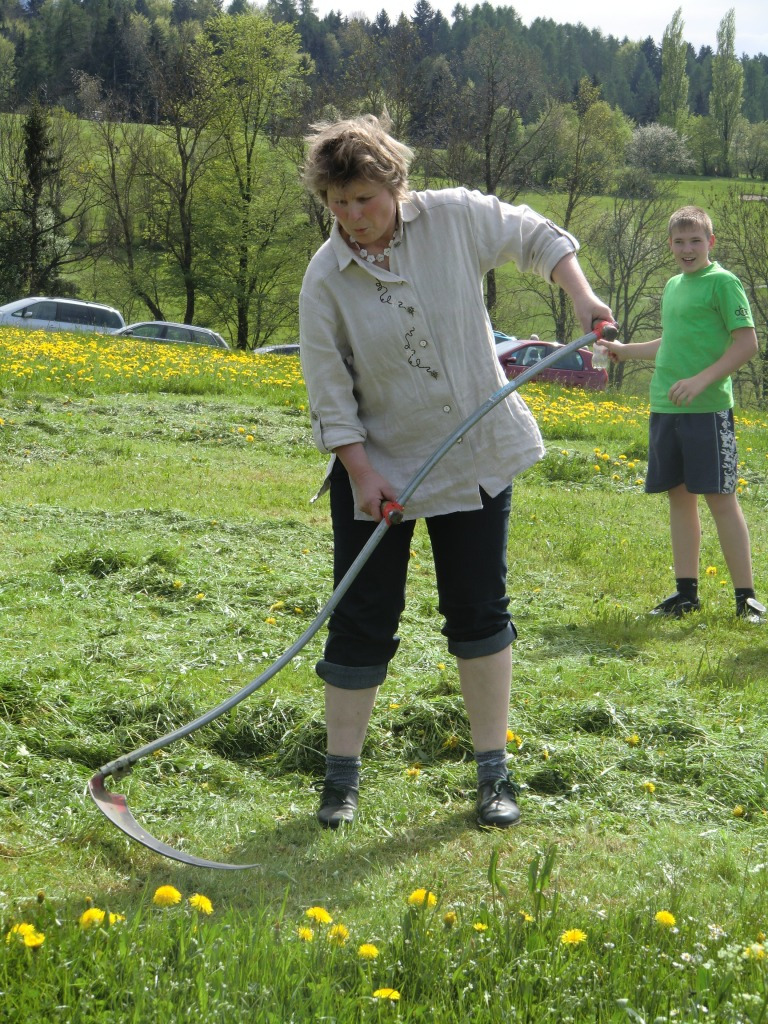 Neben den Mähern der Landjugend konnten im Anschluss auch noch zahlreiche Besucher in der Gästeklasse die Schneide ihrer Sense testen. Als beste Mäherin konnte sich Theresia Buchegger vor Johann Holzinger und Karl Spitzbart durchsetzen.