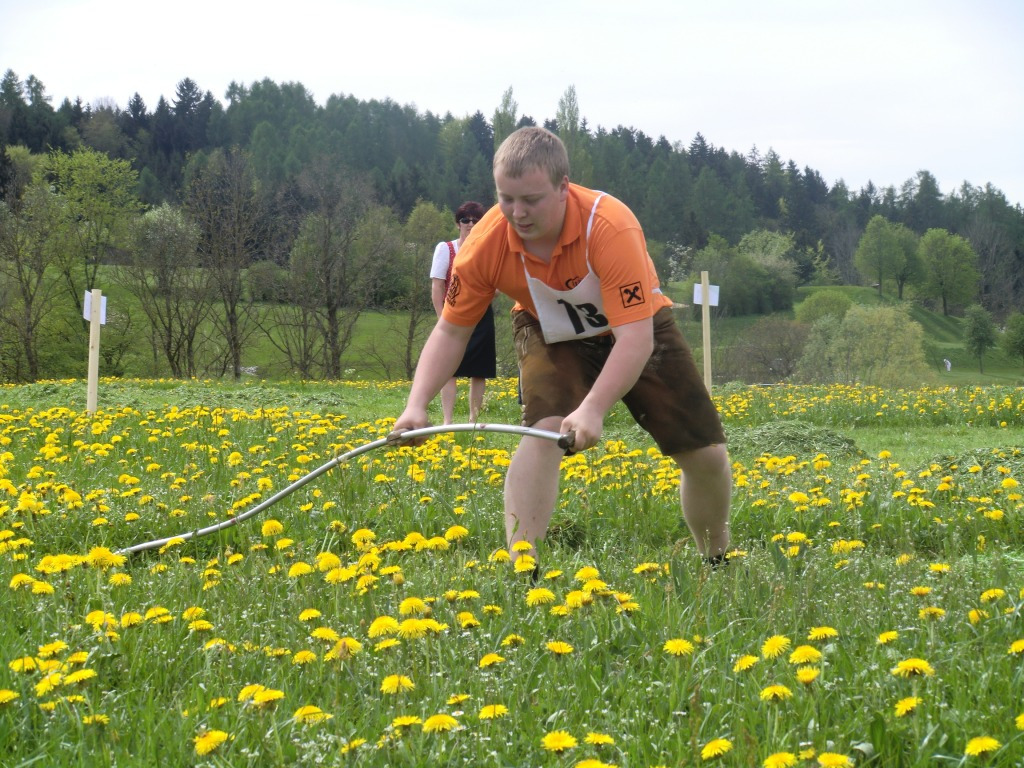 Bei hohen Temperaturen und Sonnenschein konnten über 30 Mähbegeisterte ihr Können unter Beweis stellen. Wichtig dabei war, die Grünfläche (Damen: 5 x 5m; Herren: 7 x 7m und Profis 10 x 10m) schnell und vor allem sauber mit der Sense zu mähen. Zum wiederholten Mal ging der Sieg in jeder Kategorie an die Landjugend Viechtwang (Damen: Renate Merschitzka, Herren: Gerald Hutterer und Profis: Dietmar Schardax).