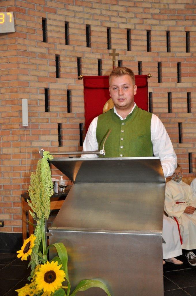 P. Jakobus rief in seiner Erntedankpredigt dazu auf, sich bewusst mit Lebens- und Nahrungsmitteln auseinanderzusetzen, denn nichts ist selbstverständlich! Die Pfarre mit P. Jakobus und Pastoralassistentin Ingrid Verres an der Spitze nutzten diesen festlichen Anlass, um die vielen neuen Ministrantinnen und Ministranten nun offiziell der Pfarre vorzustellen und sie aufzunehmen. Auch wir wünschen den vielen Kids viel Freude bei der Ausübung ihrer neuen Aufgabe.