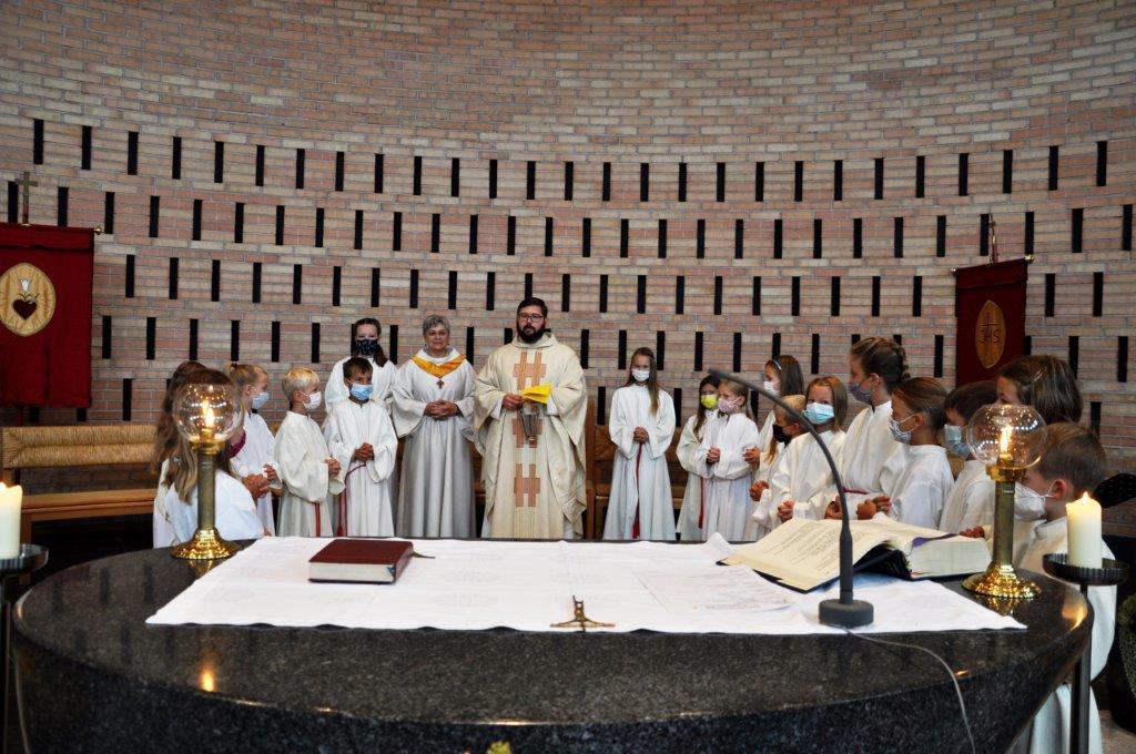 P. Jakobus rief in seiner Erntedankpredigt dazu auf, sich bewusst mit Lebens- und Nahrungsmitteln auseinanderzusetzen, denn nichts ist selbstverständlich! Die Pfarre mit P. Jakobus und Pastoralassistentin Ingrid Verres an der Spitze nutzten diesen festlichen Anlass, um die vielen neuen Ministrantinnen und Ministranten nun offiziell der Pfarre vorzustellen und sie aufzunehmen. Auch wir wünschen den vielen Kids viel Freude bei der Ausübung ihrer neuen Aufgabe.