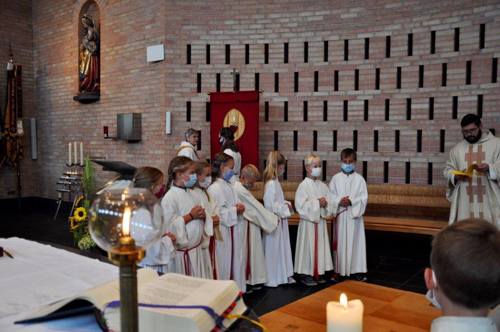 P. Jakobus rief in seiner Erntedankpredigt dazu auf, sich bewusst mit Lebens- und Nahrungsmitteln auseinanderzusetzen, denn nichts ist selbstverständlich! Die Pfarre mit P. Jakobus und Pastoralassistentin Ingrid Verres an der Spitze nutzten diesen festlichen Anlass, um die vielen neuen Ministrantinnen und Ministranten nun offiziell der Pfarre vorzustellen und sie aufzunehmen. Auch wir wünschen den vielen Kids viel Freude bei der Ausübung ihrer neuen Aufgabe.