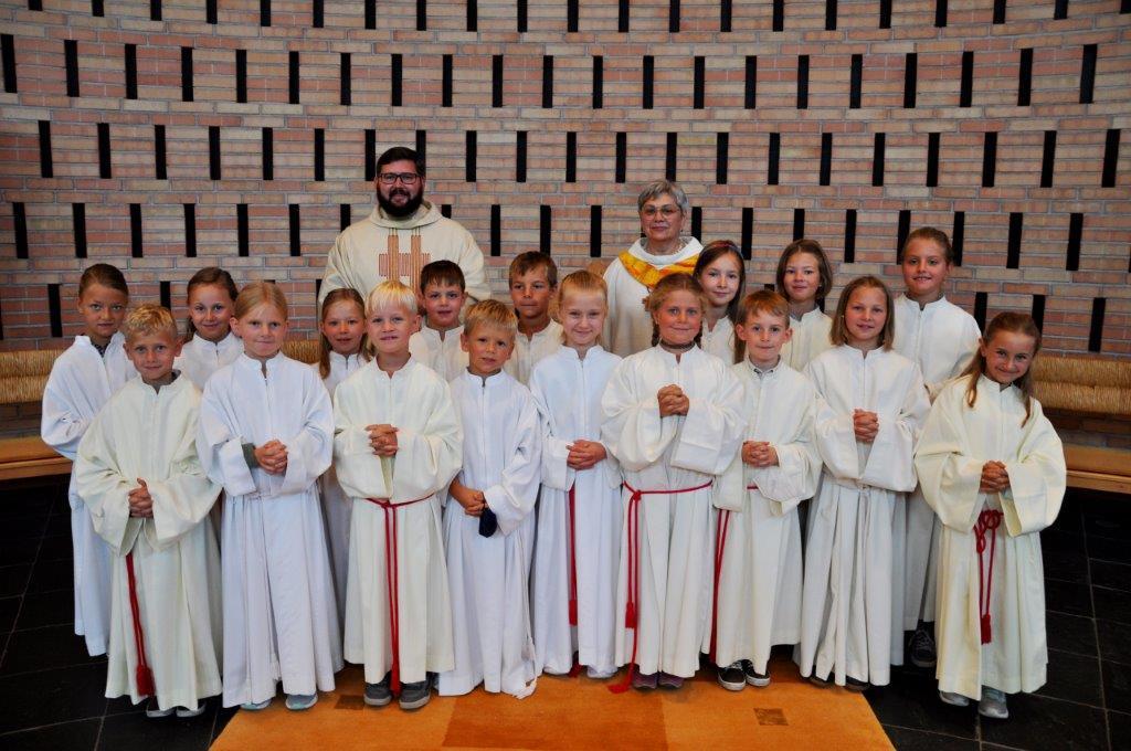 P. Jakobus rief in seiner Erntedankpredigt dazu auf, sich bewusst mit Lebens- und Nahrungsmitteln auseinanderzusetzen, denn nichts ist selbstverständlich! Die Pfarre mit P. Jakobus und Pastoralassistentin Ingrid Verres an der Spitze nutzten diesen festlichen Anlass, um die vielen neuen Ministrantinnen und Ministranten nun offiziell der Pfarre vorzustellen und sie aufzunehmen. Auch wir wünschen den vielen Kids viel Freude bei der Ausübung ihrer neuen Aufgabe.