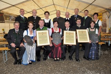 Ortsbauernobmann Vizebgm. Anton Pühringer stellte im zweiten Teil die drei neuen Erbhöfe und deren Geschichte vor. Es sind dies: Greti und Franz Bieregger ("Topf in der Edt"), Maria, Johann und Michael Spitzbart ("Bauer z‘ Hilzing") und Resi und Karl Söllner ("’Simmerl z‘ Laizing"). Nach der Ansprache von Landwirtschaftskammerpräsident Ing. Franz Reisecker, der sich vom Festgeschehen sichtlich beeindruckt zeigte, wurden die Erbhofurkunden und Tafeln an die drei Familien überreicht.