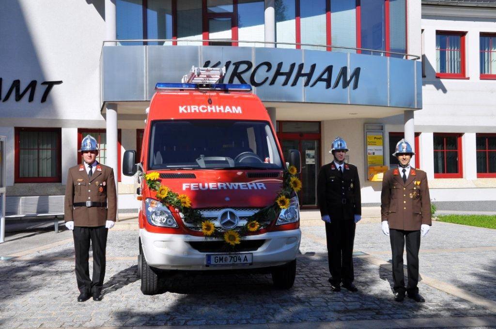 Nach dem Gottesdienst nahmen alle Vereine und Körperschaften vor dem Gemeindeamt Aufstellung, um der Segnung des neuen Einsatzfahrzeuges der FF Kirchham beizuwohnen.