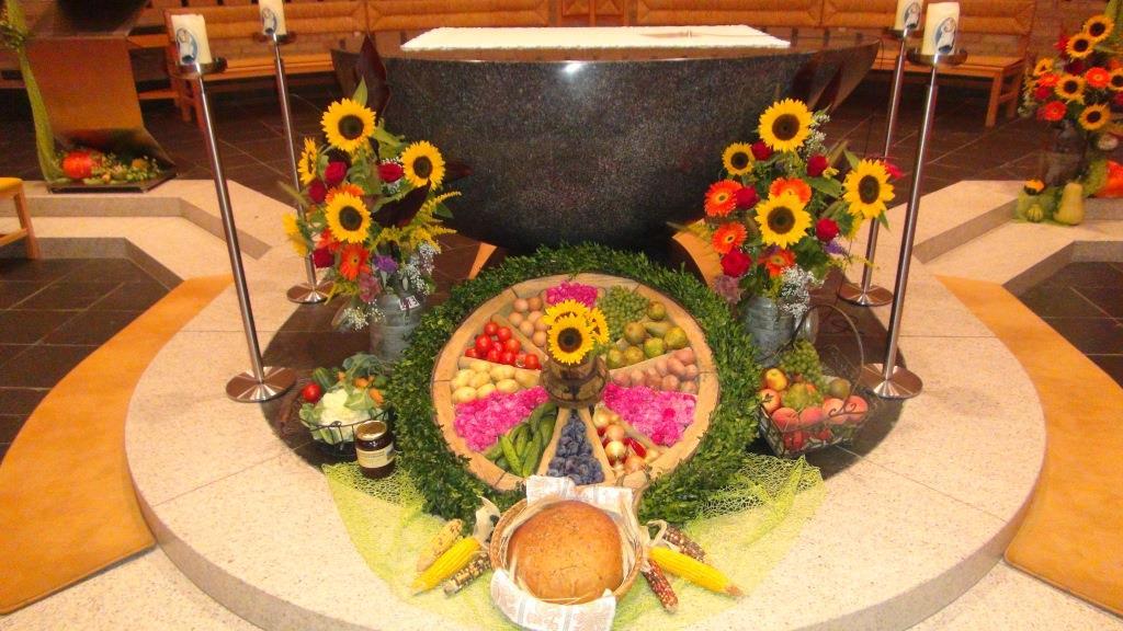 „Soll man nach so einem großen Unwetterschaden überhaupt Erntedank in gewohnter Weise feiern?“, fragte sich so mancher. – JA, denn es ist eine gute Möglichkeit, sich wieder bewusst zu machen, dass trotz aller Technologien und Wissen der Mensch nicht alles selbst in der Hand hat. Auch Pfarrer P. Burkhard verwieß in seiner wieder sehr treffenden und zum Nachdenken ausgeführten Predigt auch auf diese Tatsache und appellierte an die MessbesucherInnen auch „das Ohr wieder mehr bei der Schöpfung zu haben“.  Durch das ständige Beschallen der Ohren mit Musik, Handy,… beachten wir oft das Wesentliche gerade in der Natur nicht mehr, ob das ein leises gezwitschere der Vögel oder das Rauschen der Blätter in den Bäumen ist.