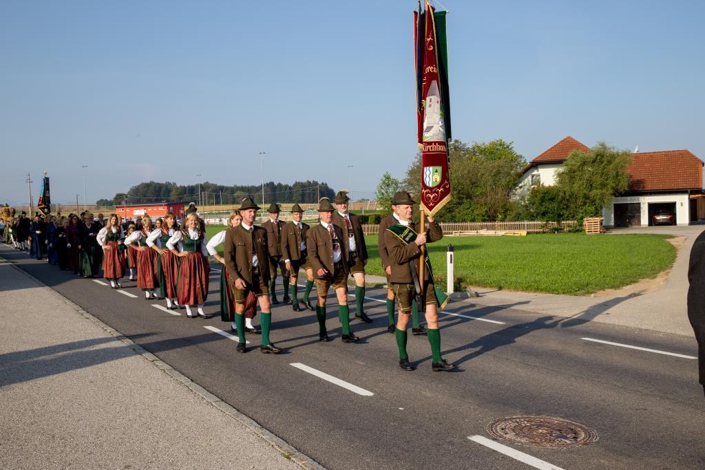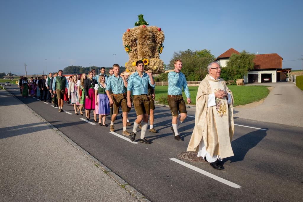 Traditionsgemäß wird am 2. Sonntag im September in Kirchham das Erntedankfest gefeiert. Es ist eines der schönsten Feste das in der Laudachgemeinde gemeinsam gefeiert wird und das prächtige Spätsommerwetter verschönerte dieses zusätzlich und so versammelten sich die vielen Mitglieder der Vereine und Körperschaften am Vorplatz des Feuerwehrhauses zum gemeinsamen Festzug. Trotz der Wetterkapriolen ist es der Landjugend gelungen die vielen verschiedenen Getreidesorten für das Binden der Erntekrone zusammeln um daraus wieder eine prächtige Krone anzufertigen.