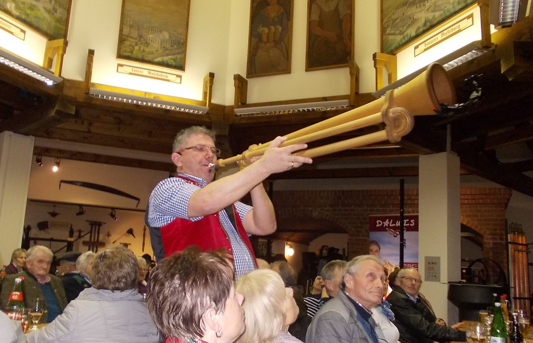 Bei der Bierverkostung spielte "DALUIS" mit der Holztrompete auf …….