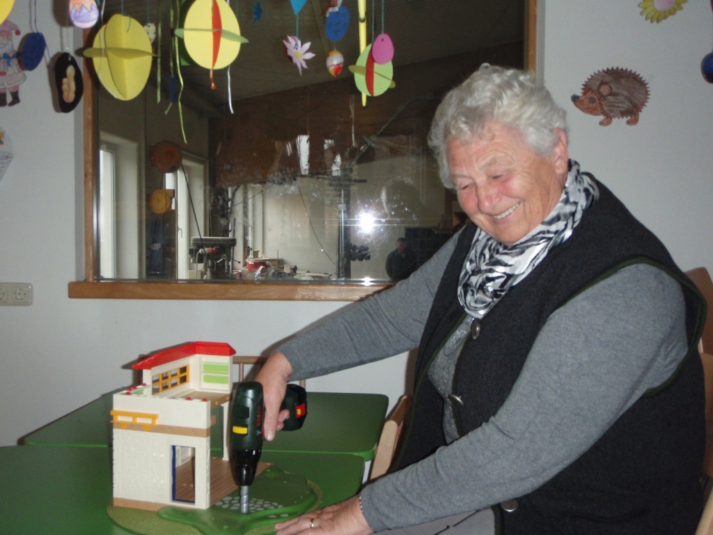 .bearbeitet nicht nur Holz, sondern auch andere Werkstoffe.   In der Krabbelstube, "Rosi gefällt es hier"!