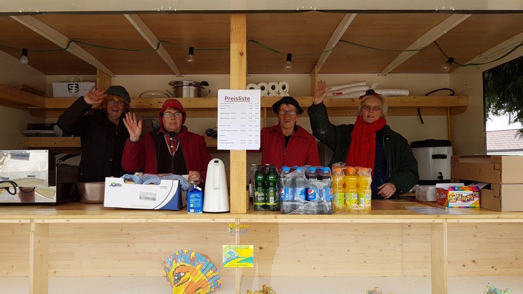 Das Bodenpersonal ist gerüstet, bei unserem Verkaufsstand neben der Hauptstraße.