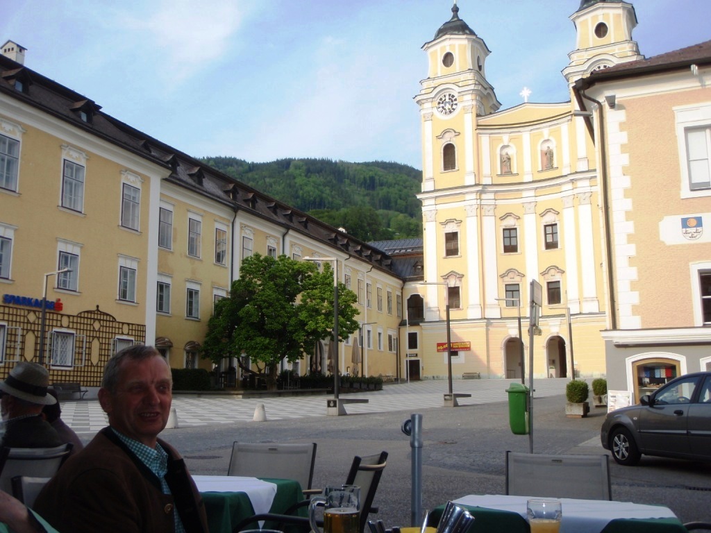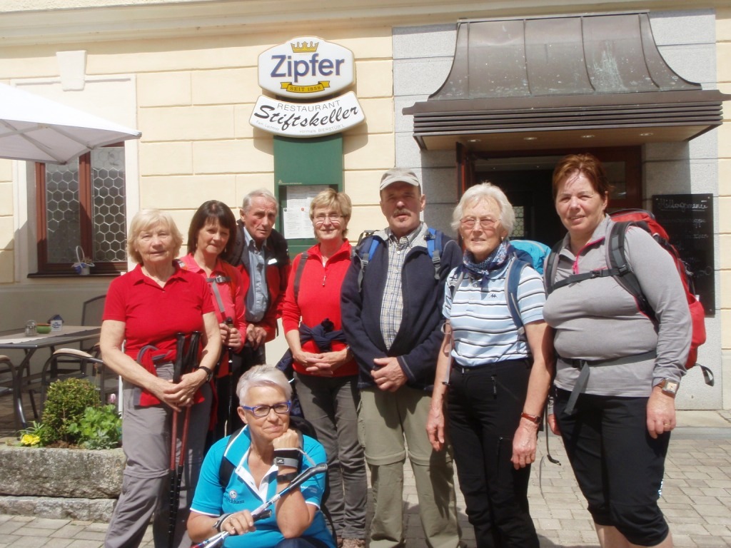 ..zum Stiftskeller, wo es ein sehr gutes Mittagessen gab – dann vorbei bei der Pfarrkirche- zu den Autos !