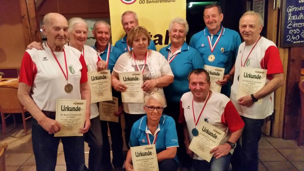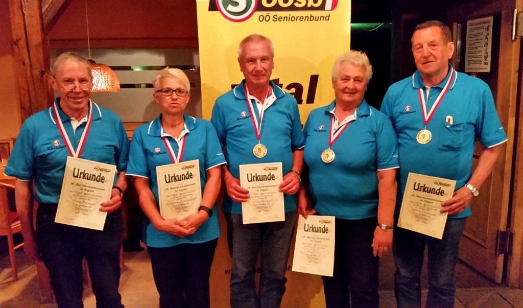 Die Mannschaft Kirchham 1:- v.l. Obm. Franz Bieregger, Franz Spitzbart, Johann Lachberger, Lore Lauterbrunner und Rosa Hüttner, konnte heuer