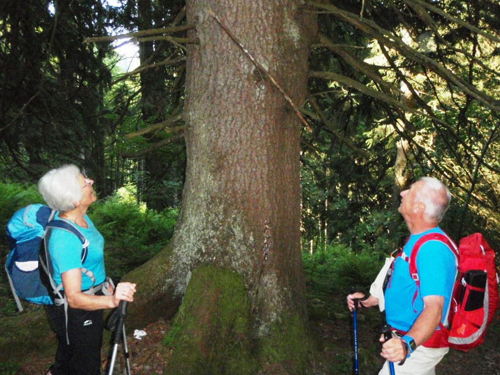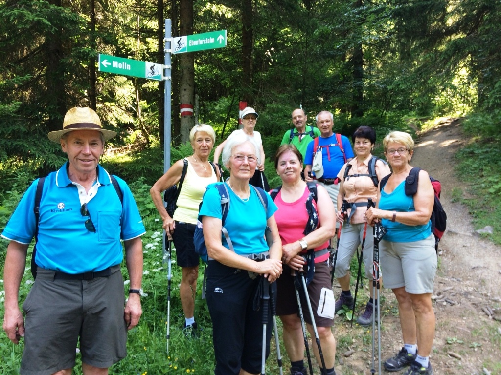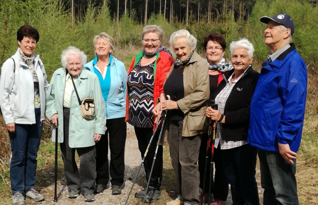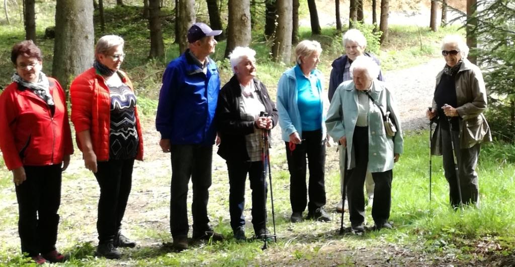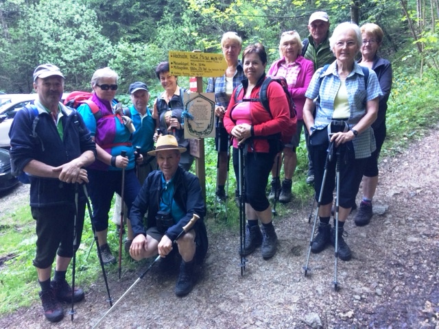 ..eine fröhliche Wanderrunde, mitten im "großen Wald", aber unter der ortskundigen Führung von Maria Mitterlehner (links), kann man sich nicht verirren !!