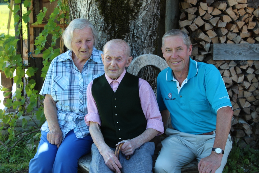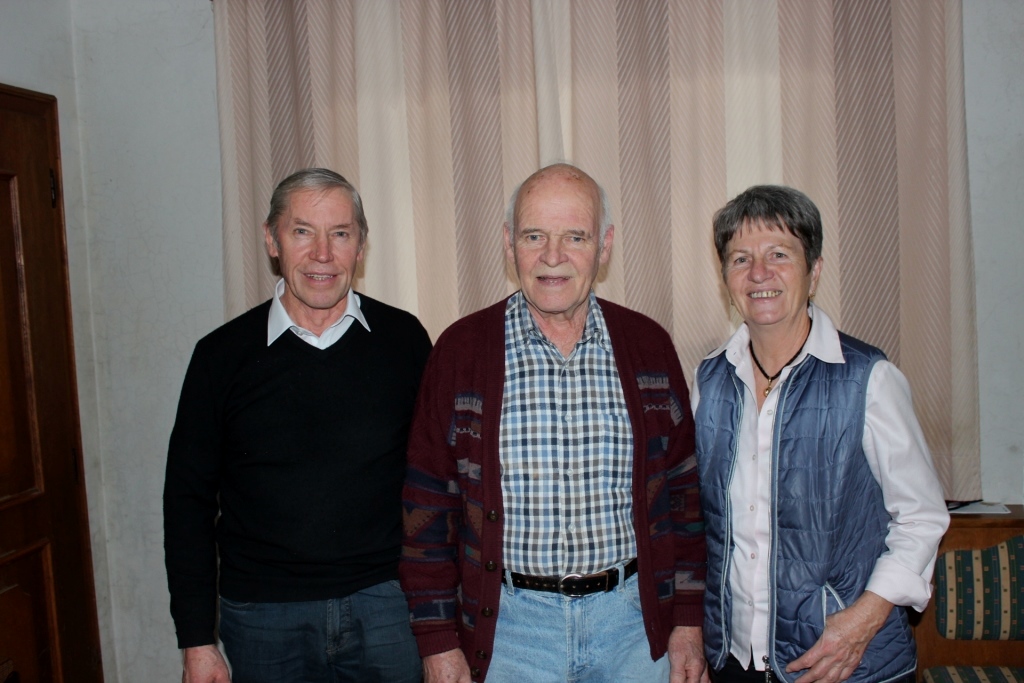 Am Bild von links:  Obm. Franz Bieregger, Jubilar Johann Steiner und Sprengelbetreuerin Resi Lachberger