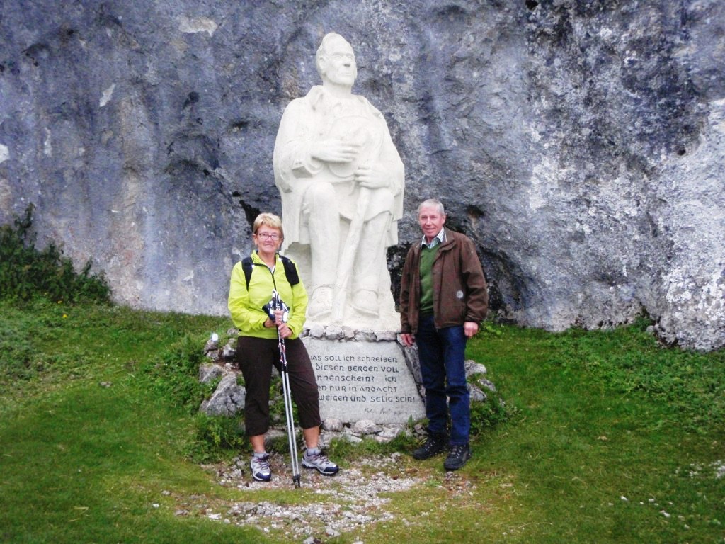 ..am Stoderzinken wollten einige den Gipfel erklimmen, doch es begann plötzlich zu regnen. Bei dieser Statue kehrten die meisten um, auch der Obm. !