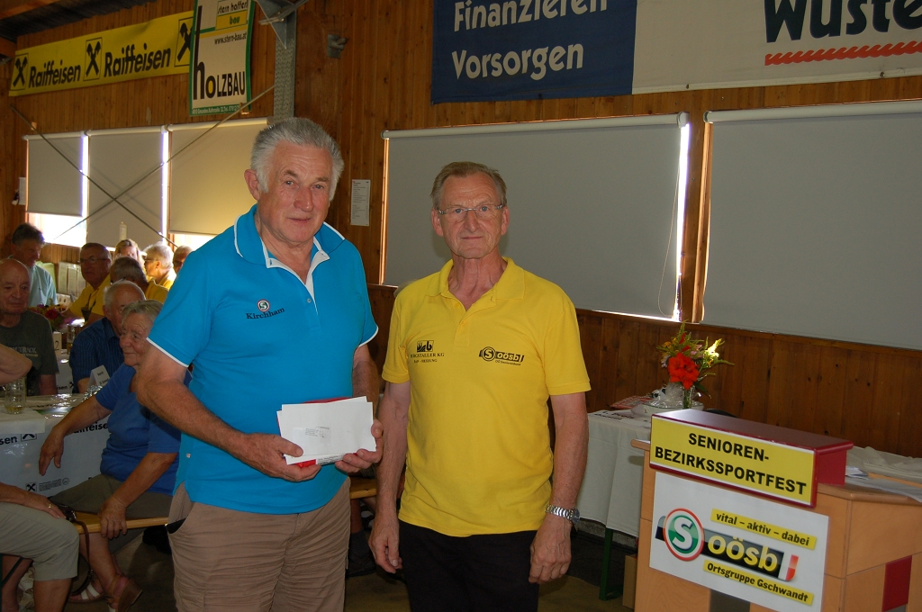 Bez.Sieger bei den Herren:  Obm.Stv. Hubert Prem bei der Preisverleihung mit