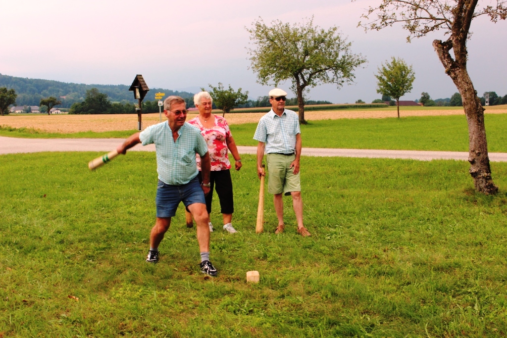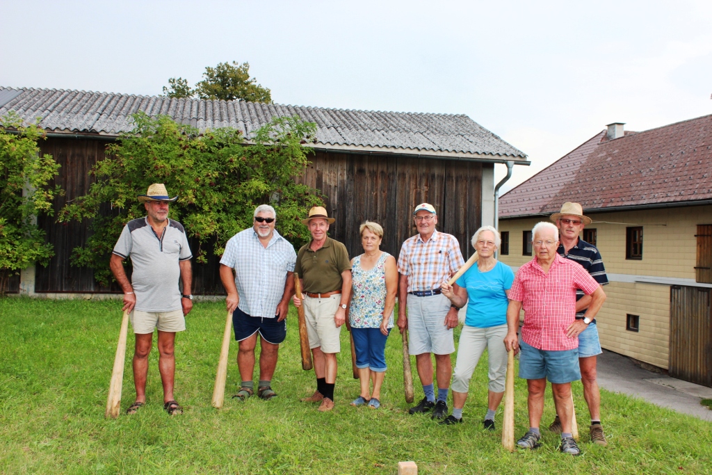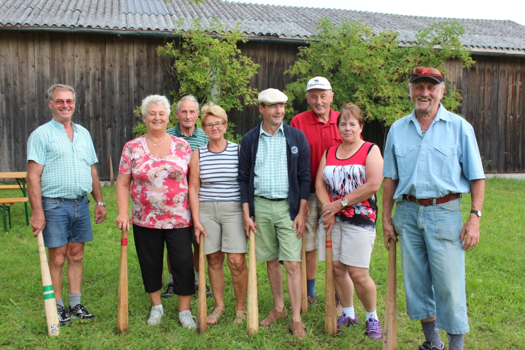 Begeistertung am jährlichen Knittelwerfen beim Hof von Obm. Franz Bieregger.