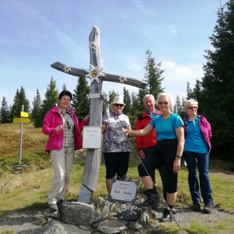 22 Wanderfreudige machten sich auf den Weg Richtung Hochsteinalm, einige bestiegen den "Lörkogel", dann