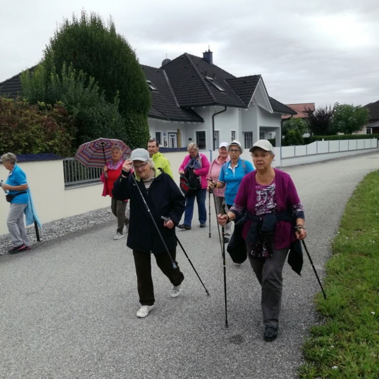 Mit flottem Schritt, 14 TN den "Neuen Naturerlebnisweg" in Edt b.Lambach, entlang der Traun gegangen  ….dann fröhlicher Abschluß im Gh. Bauer.
