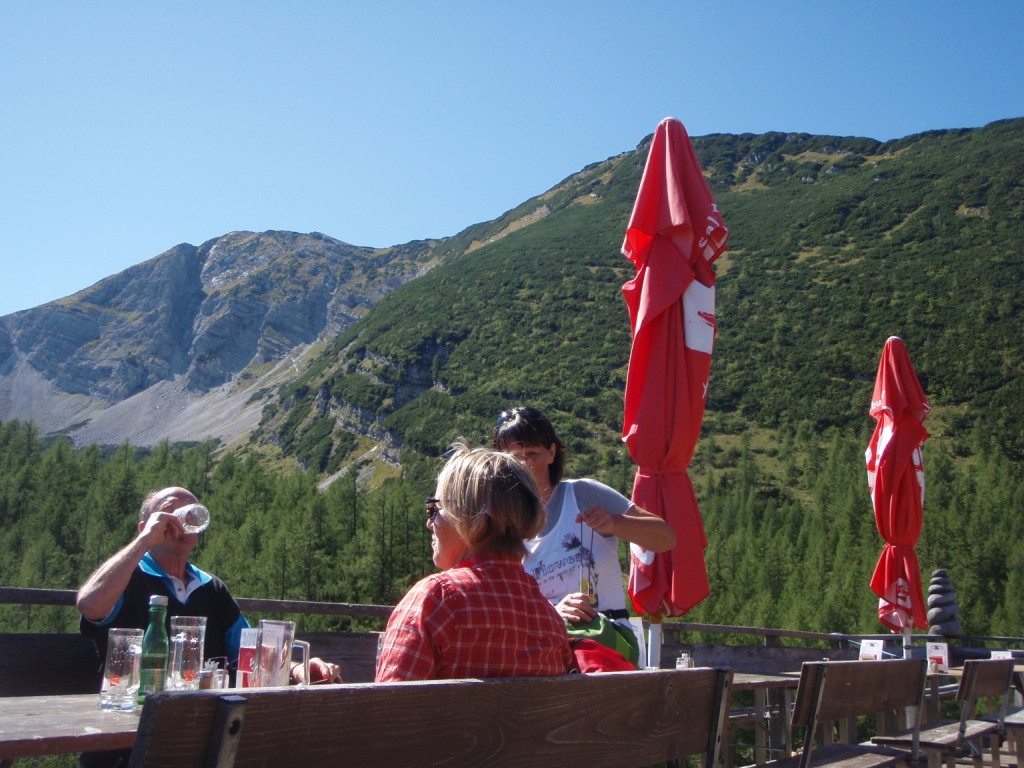 Einige wanderten zur "Dümlerhütte",  wo später auch die Bergsteiger eintrafen               ……und sich stärkten .