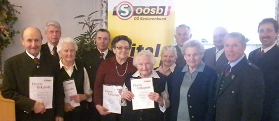 Johann Lachberger, Margarethe Lederer und Maria Brunner mit Obmann Franz Bieregger.