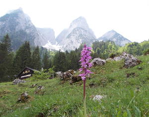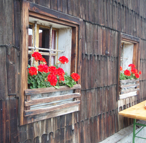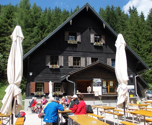 Das Mittereckerstüberl mit der Materialseilbahn auf den Hochkogel.