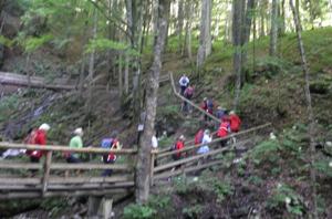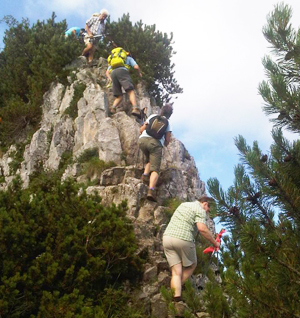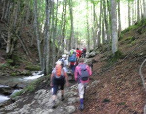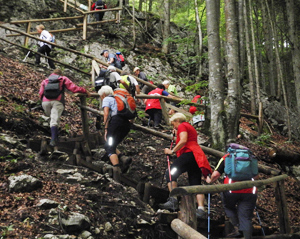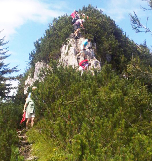 Die meisten stiegen durch den steilen Bergwald noch hinauf