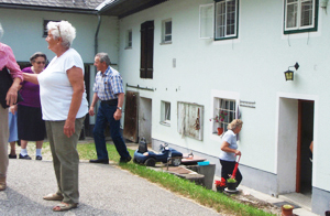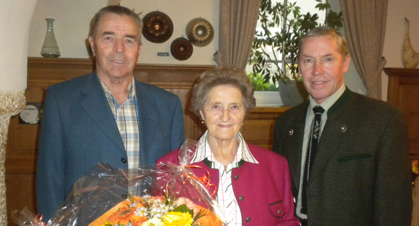 Foto oben: Frau Holzinger mit Sprengelbetreuer Johann Brunner und Obmann Franz Bieregger