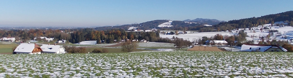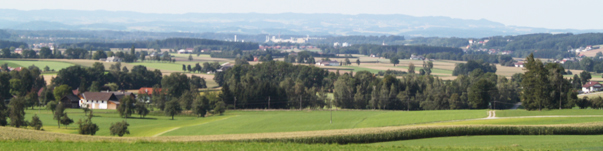 Von der Anhöhe zum Guggenberg: Aussicht auf Kirchham, Feichtenberg, Golfplatz.